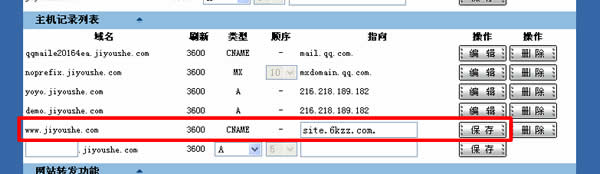 建议使用CNAME别名解析到:site.6kzz.com